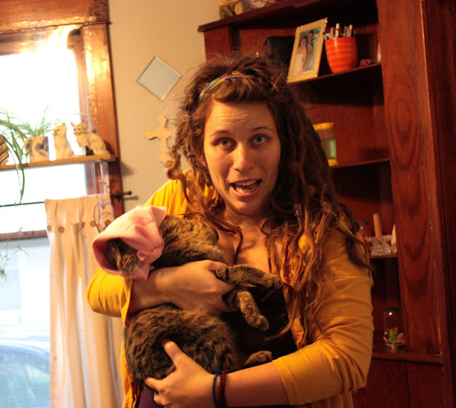 Around 10am, the midwife on call came in to see how things were going. This happened to be a midwife of a client that I had doula'd for last year and I knew that she was also bad news. She was pretty shady then, and had done some not so great things to my client back then. She left as soon as she came in, and didn't even acknowledge me. Great, I thought, though I didn't mention any of that to my team until after I had Judah. Around 10:30 I got in the shower and that was really nice, though I couldn't handle contractions alone at that point. My back labor was out of control and I had to have someone or something pressing up on me throughout the entire contraction. So, I got out of the shower and labored next to the bed. I didn't put any clothes on either after that point, which looking back on, I must have looked insane: stark naked, with a henna'd belly and my giant mop of dreads on top of my head. I was also pretty much screaming through contractions at this point. My throat was sore for days after I had him. My last hour of labor was spent leaning up against the bed, while the nurse held the monitor in place and I squirted amniotic fluid all over her shoes as she knelt next to me. I would grab onto my midwives hands and we would do tug of war during a contraction. Aaron was in charge of my back labor. I was starting to feel that deep, big pressure that took me a few contractions to realize that it was his head that I was feeling so low.